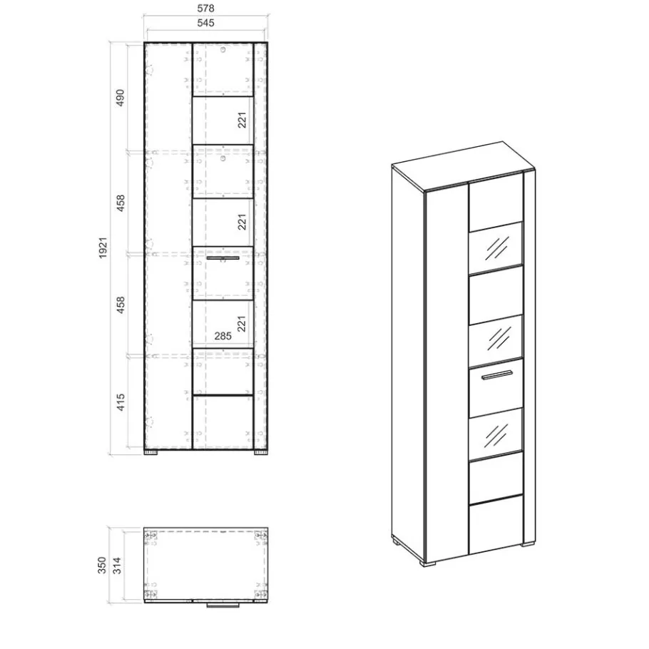 - 58 cm Breit, 192 cm Hoch, 35 cm Tief