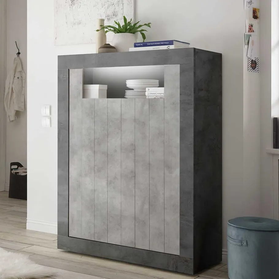 - Vielseitiges Highboard in Dunkel- und Betongrau