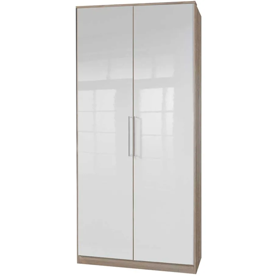 - Schlanker Kleiderschrank in Weiß und Eiche Sägerau