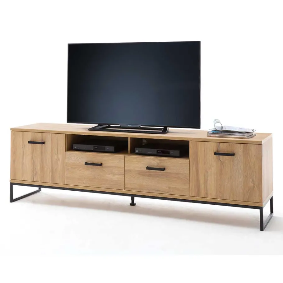 - Großzügiges TV-Board in Wildeichefarben und Schwarz