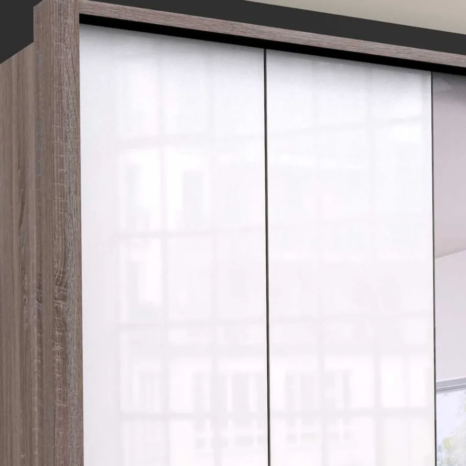 - Glanzvoller Kleiderschrank in Weiß und Eiche Trüffelfarben