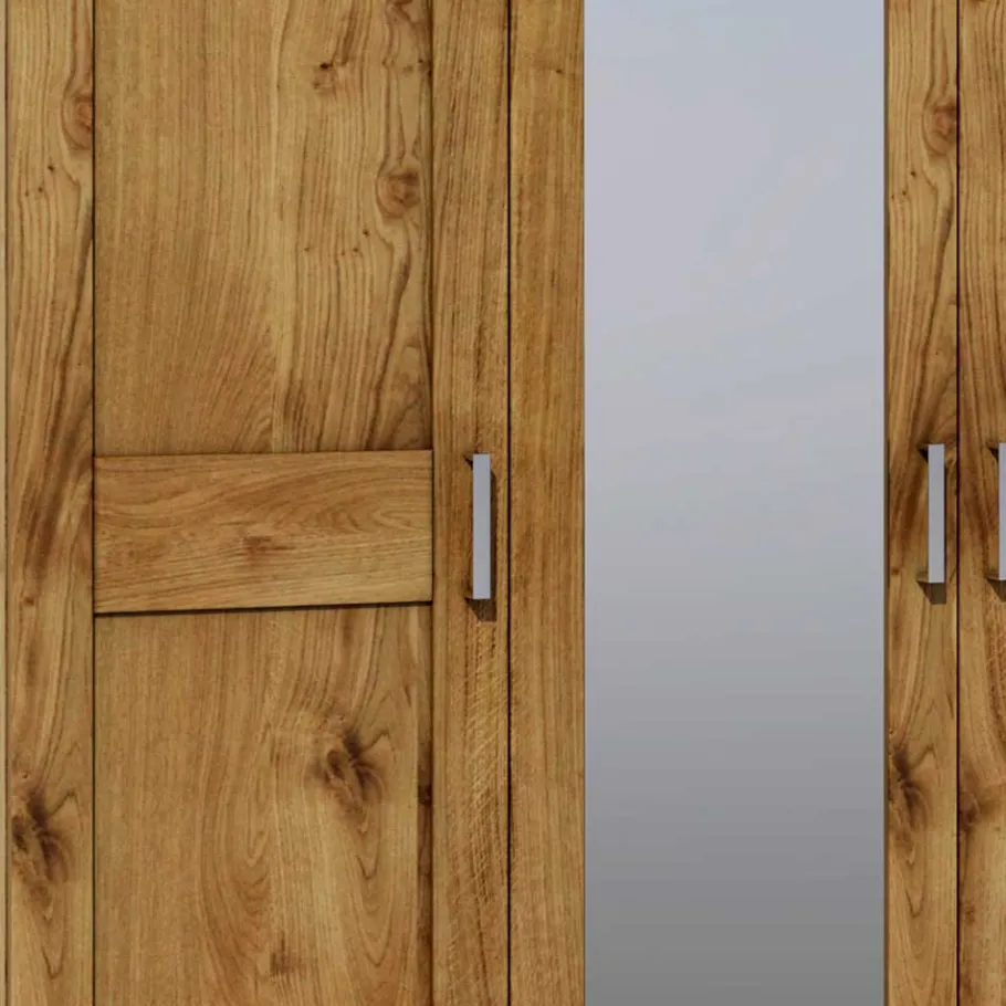 Der Kleiderschrank „Rirua“ ist eine exzellente Mischung aus traditionellem Landhausstil und modernem Design. Gefertigt aus massivem Wildeicheholz mit durchgehender Lamelle an der Front, bringt er ein Stück Natur in Ihre vier Wände. Das Wildeicheholz ist geölt, was die Maserung und Schönheit des Holzes hervorhebt und es vor Feuchtigkeit und Schmutz schützt. Der Korpus und die Innenausstattung bestehen aus robustem Holzwerkstoff und sind mit einer hochwertigen Folierung in authentischer Wildeiche Optik versehen. Dieses Ölen der massiven Holzoberflächen und die pflegeleicht folierten Oberflächen erhöhen die Langlebigkeit und verleiht dem Schrank eine warme, natürliche Ausstrahlung.
