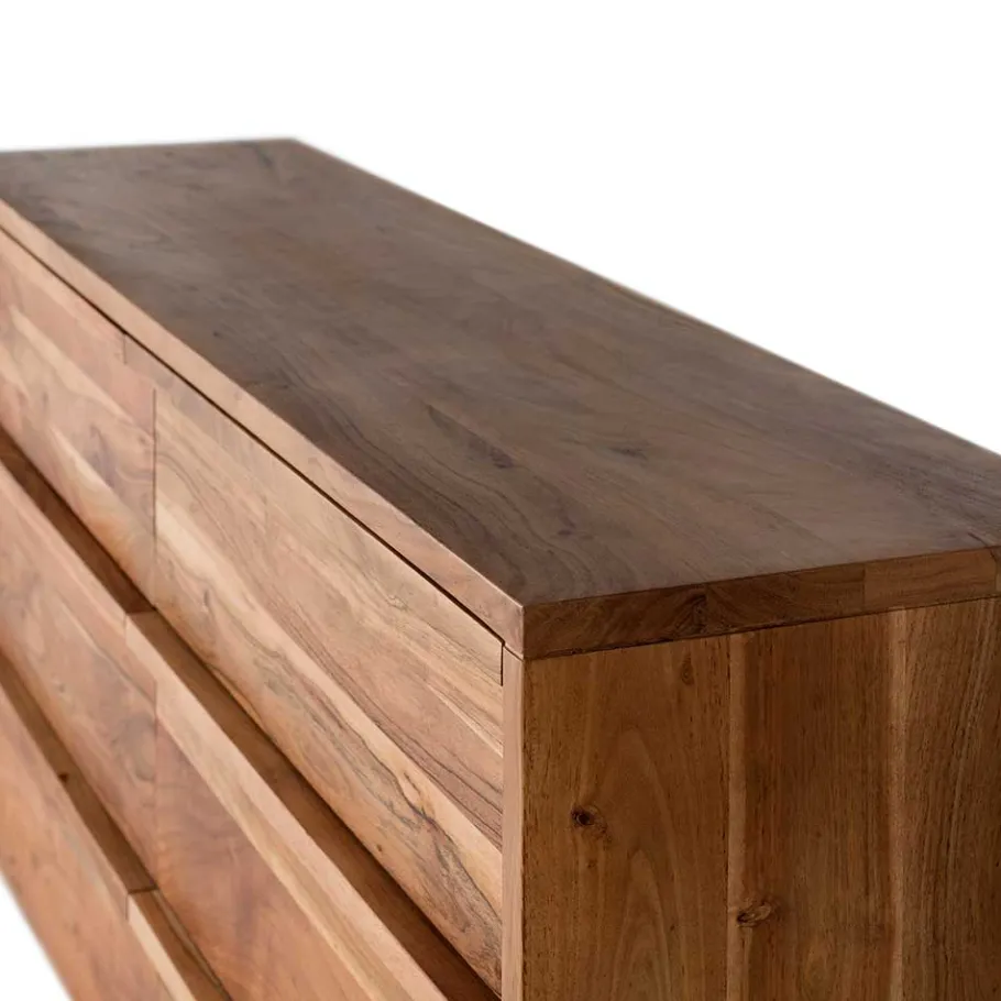 Gefertigt aus massivem Akazienholz bringt „Vomano“ die Natur direkt in Ihr Zuhause. Akazienholz zählt zu den edelsten und robustesten Hölzern der Welt – bekannt für seine außergewöhnliche Härte, Langlebigkeit und Widerstandsfähigkeit. Die samtig-glatte Oberfläche mit ihrer charaktervollen Maserung schmeichelt der Hand und strahlt pure Wertigkeit aus. Kein Stück gleicht dem anderen – jeder Farbverlauf, jede Struktur erzählt eine Geschichte und macht Ihr Sideboard zu einem echten Unikat.
