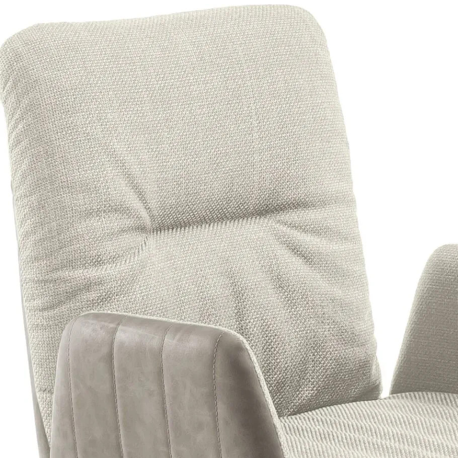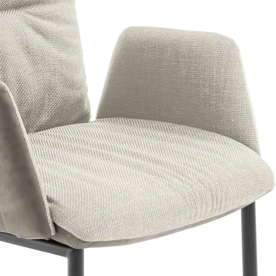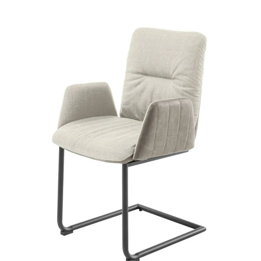 Der Armlehnen-Freischwingerstuhl „Clebertus“ bringt mit seiner harmonischen Farbgebung in Creme und Schwarz eine entspannte Atmosphäre in Ihr Zuhause. Mit seiner lässigen Kissenoptik, dekorativen Stepp- und Ziernähten sowie der leicht nach hinten geneigten Rückenlehne lädt er dazu ein, den Alltag hinter sich zu lassen und den Moment zu genießen – ob am Esstisch, im Homeoffice oder als stilvolles Highlight im Besprechungsraum.