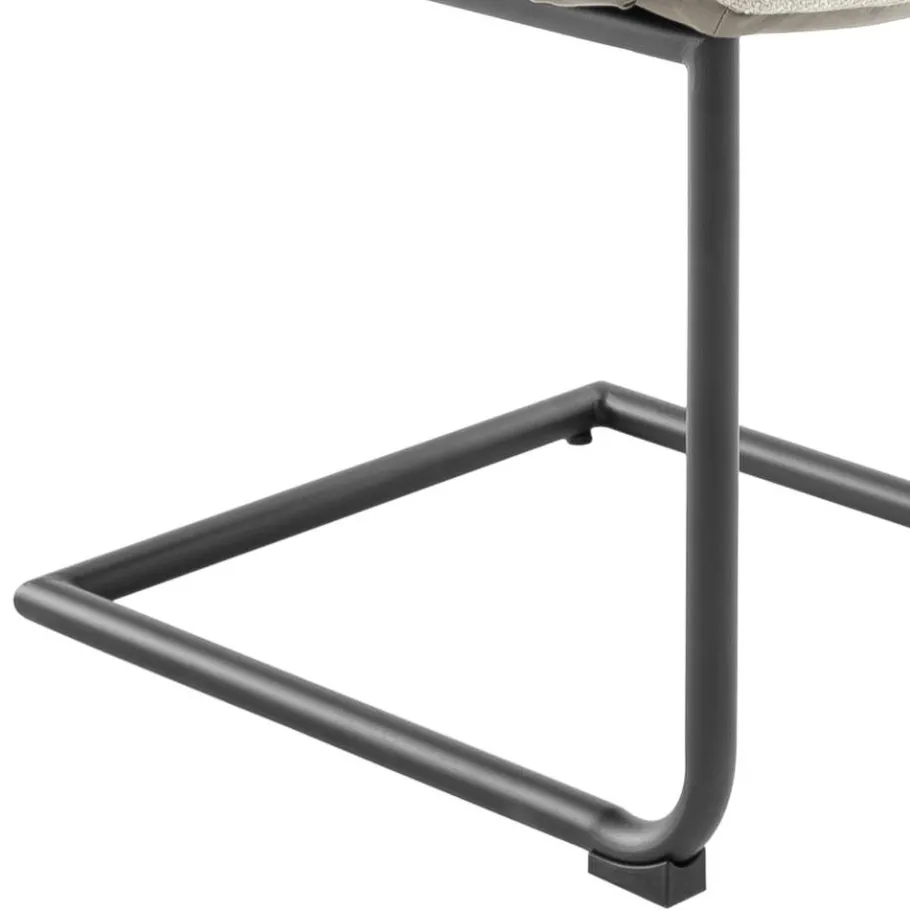 Der Freischwingerstuhl ist mit komfortablen Armlehnen ausgestattet und steht auf einem stabilen, mattschwarz lackierten Metallgestell mit Bodenschonern, die Ihren Boden zuverlässig schützen. Die ergonomisch geneigte Rückenlehne unterstützt eine angenehme Sitzhaltung und sorgt gemeinsam mit den Armlehnen für entspanntes Sitzen auch über längere Zeit. Mit einer maximalen Belastbarkeit von 120 kg bietet „Clebertus“ die nötige Stabilität für den täglichen Einsatz.