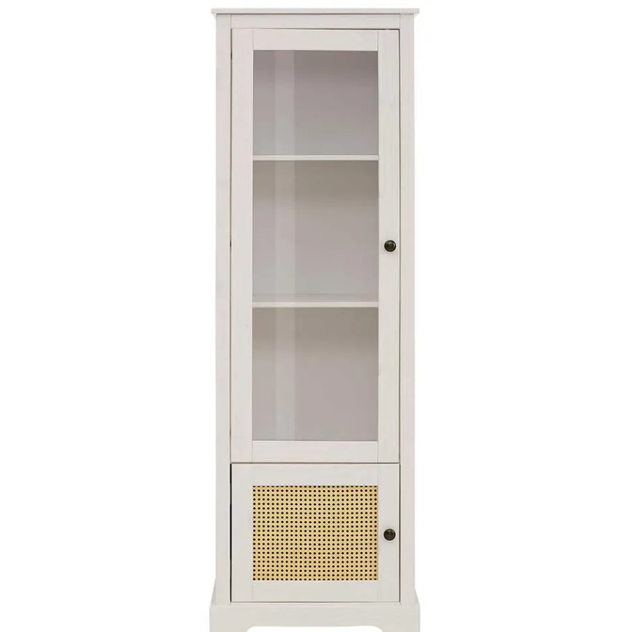 - Schlanker Vitrinenschrank in Weiß und Beige