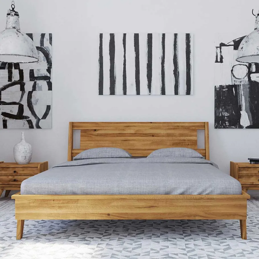Gefertigt aus massivem Wildeichenholz, besticht unser Bett „Hardus“ durch außergewöhnliche Festigkeit und Langlebigkeit. Wildeiche ist ein besonders robustes Holz mit einer markanten, lebhaften Maserung und variierenden Farbschattierungen, die jedes Möbelstück einzigartig machen. Durch die natürliche Ölung der Oberflächen wird die Schönheit des Holzes betont und gleichzeitig geschützt. Diese Methode erhält die Atmungsaktivität des Holzes und verleiht ihm eine widerstandsfähige und pflegeleichte Oberfläche.