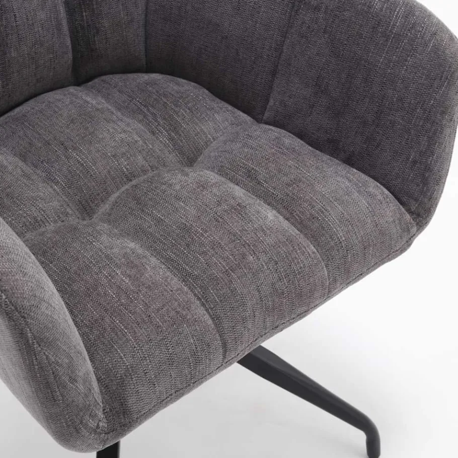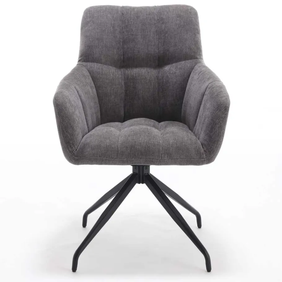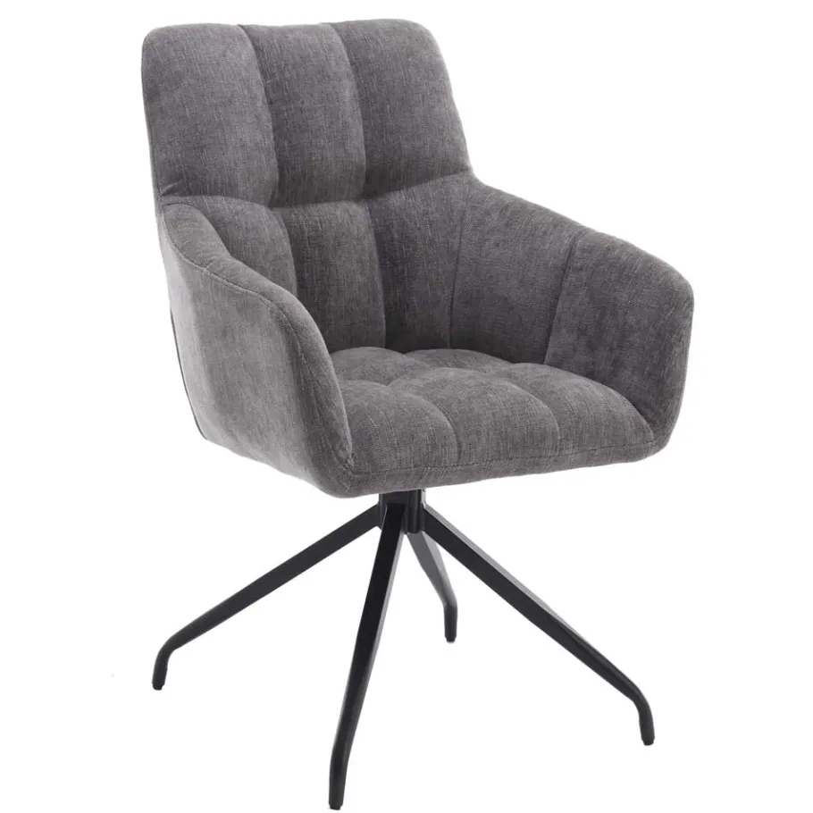Der Armlehnen-Küchenstuhl „Doinera“ kombiniert stilvolles Design mit hervorragendem Komfort. Der graue Strukturstoff aus strapazierfähigem Polyester sorgt für eine elegante Optik und lange Haltbarkeit. Das schwarze Metall-Spidergestell rundet das Design ab und verleiht dem Stuhl einen modernen, eleganten Touch.