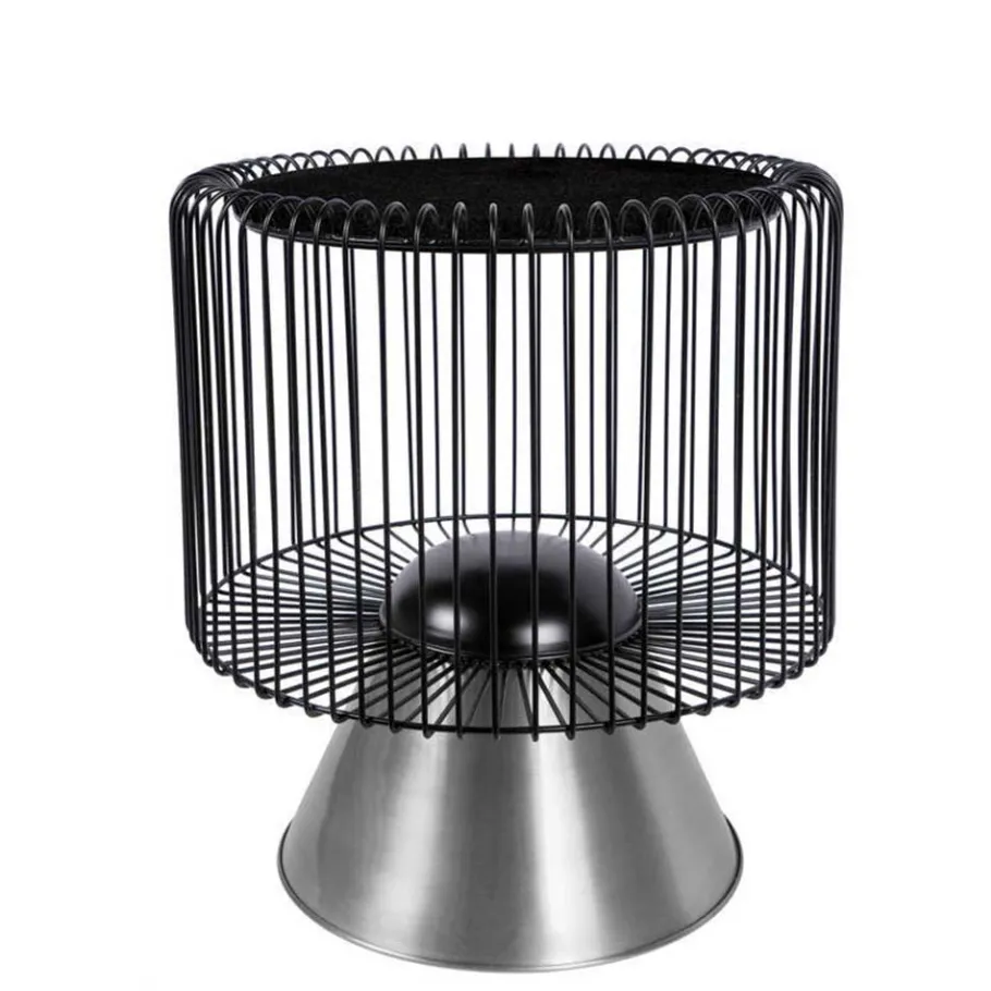 - Dekoratives Gestell mit silberfarbigem Sockel und schwarzem Drahtkorpus