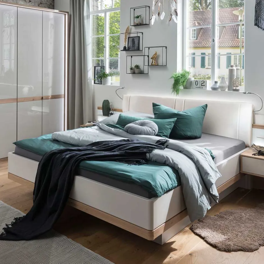 - Modisches Bett in Beige und Eiche Bianco
