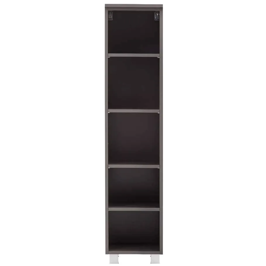 Mit einer Breite von 30 cm, einer Höhe von 135 cm und einer Tiefe von 35 cm nutzt dieses Regal auch schmale Wandbereiche optimal aus. Fünf offene Fächer durch vier in der Höhe verstellbare Einlegeböden bieten Ihnen reichlich Stauraum für Handtücher, Kosmetikprodukte oder dekorative Accessoires. Ganz gleich, ob Sie Ordnung schaffen oder gezielt Akzente setzen möchten – dieses Möbelstück lässt Ihnen alle Freiheiten.
