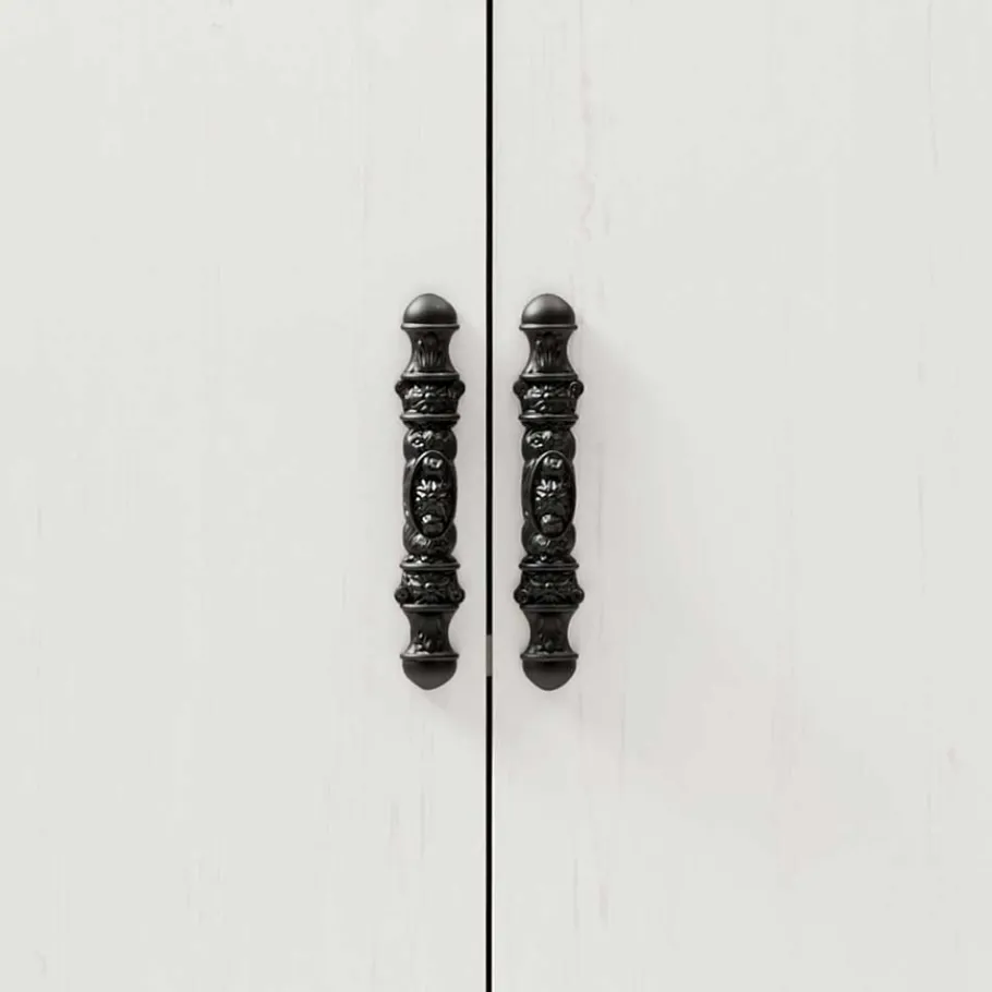- Schwarze Metallgriffe mit antik anmutenden Verzierungen