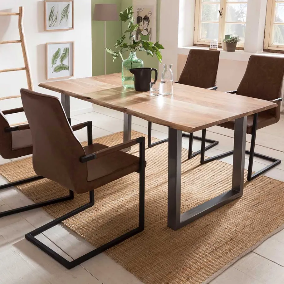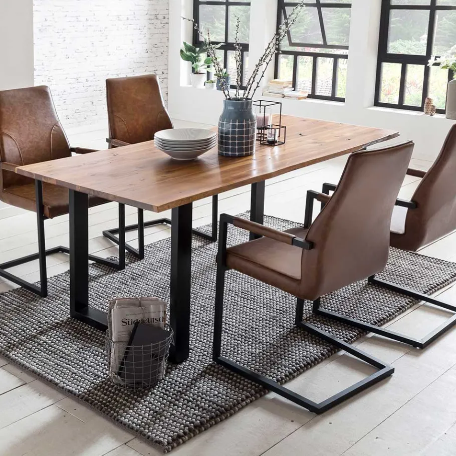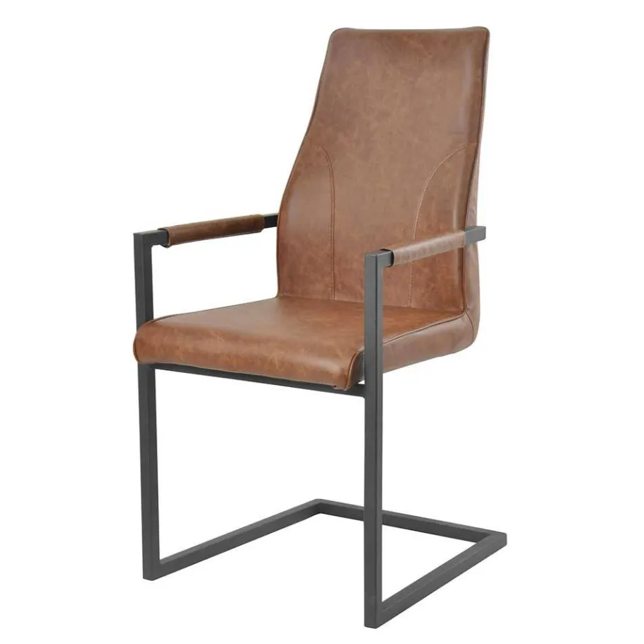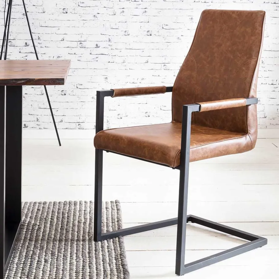 Mit seinem spannenden Zusammenspiel aus Hellbraun und Schwarz präsentiert sich der Freischwinger „Dania“ als echtes Statement für alle, die das Besondere lieben. Der markante Industry-Charakter mit seinen klaren Linien, kantigen Formen und dem metallischen Gestell erinnert an urbane Loft-Atmosphäre – modern, authentisch und voller Charakter. Dieses Möbelstück verleiht jedem Ess- oder Wohnbereich eine stilvolle Note, die Stärke und Gemütlichkeit perfekt miteinander verbindet.