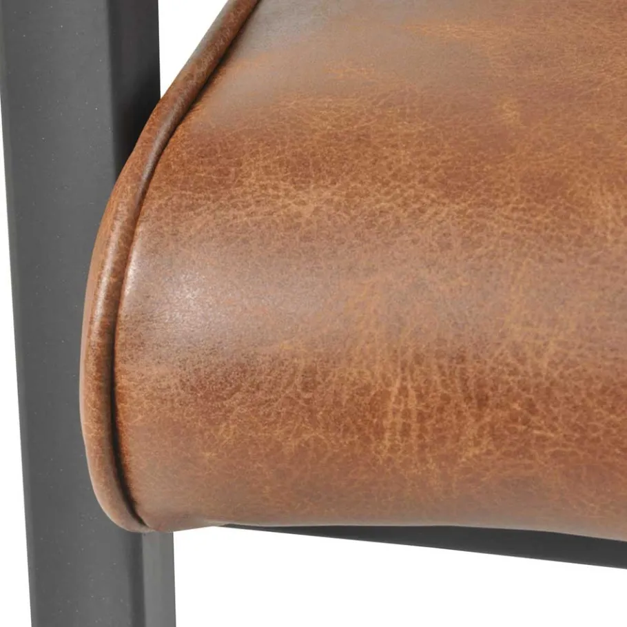 Der Sitz und die Rückenlehne sind mit einem strapazierfähigen Kunstlederbezug aus 100 % Polyurethan gefertigt. Die Vintage-Optik begeistert mit ihrem leicht gealterten Look, der Wärme und Charme ausstrahlt. Schon beim ersten Hinsetzen spürt man die weiche, aber dennoch robuste Struktur des Materials – angenehm auf der Haut, pflegeleicht im Alltag. Das schwarze Metallgestell sorgt für Stabilität und eine schwebende Optik, die den Freischwinger so unverwechselbar macht.