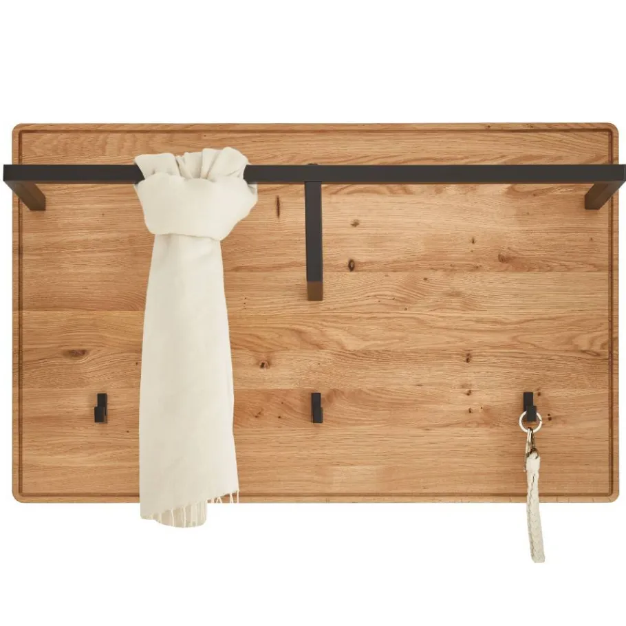 Das Garderobenpaneel „Darcona“ bringt Ordnung und Stil in Ihren Flur. Mit seiner Kombination aus Wildeiche Natur und schwarzem Metall setzt es markante Akzente und fügt sich dennoch harmonisch in moderne Wohnkonzepte ein. Die stabile Rückwand mit optischem Rahmen verleiht dem Paneel eine klare Struktur und unterstreicht die hochwertige Verarbeitung. Ob als Solist oder in Kombination mit weiteren Möbeln aus dem Programm – das Garderobenpaneel „Darcona“ ist ein funktionales Designstatement für Ihren Eingangsbereich.