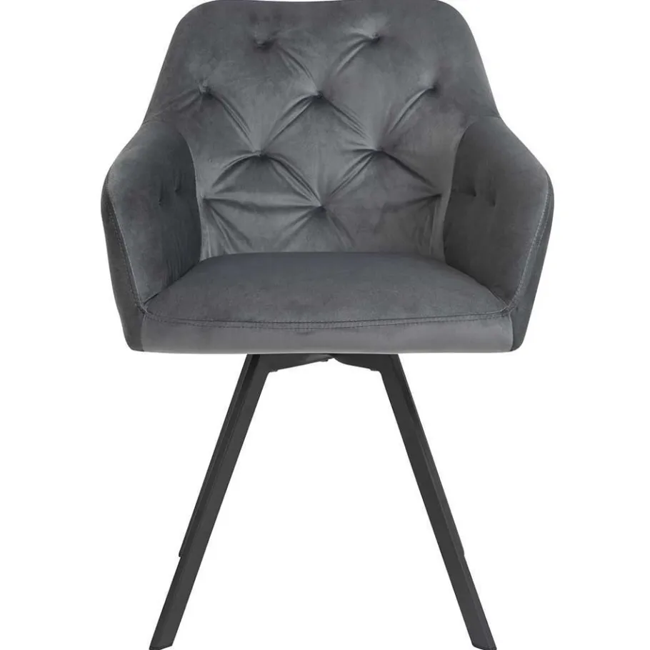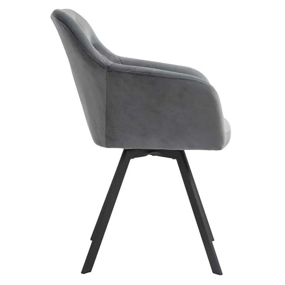 Die Stühle der Essgruppe „Potsdam“ bieten nicht nur optische Raffinesse, sondern auch ein erstklassiges Sitzgefühl. Der weiche Samtbezug in elegantem Grau aus 100 % Polyester fühlt sich angenehm an und überzeugt durch seine pflegeleichte und strapazierfähige Beschaffenheit. Die Schaumstoffpolsterung sorgt für ein bequemes Sitzgefühl, während die breite Rückenlehne mit dekorativer Knopfheftung ein stilvolles Detail darstellt.
