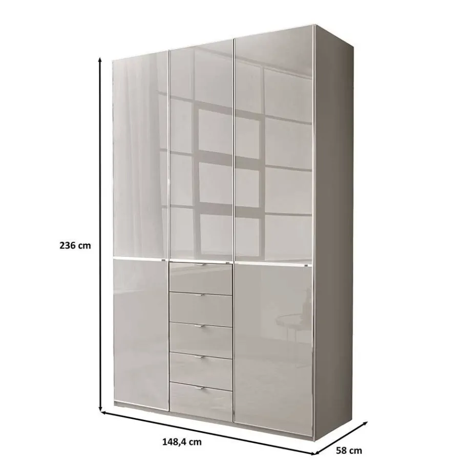Verleihen Sie Ihrem Schlafzimmer mit dem stilvollen Kombi-Schlafzimmerschrank „Nucina“ einen Hauch von Eleganz und Klarheit. Die edle Farbgebung in Hellgrau, mit einer Front aus Glas und einem hellgrau folierten Korpus, sorgt für eine schlichte, aber eindrucksvolle Ästhetik. Der Schrank fügt sich perfekt in moderne Schlafzimmer, Jugendzimmer oder Gästezimmer ein und bietet nicht nur ein schickes Design, sondern auch außergewöhnlichen Stauraum.