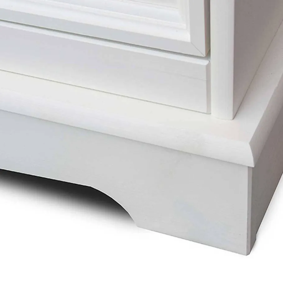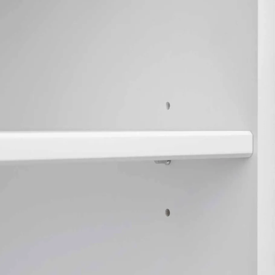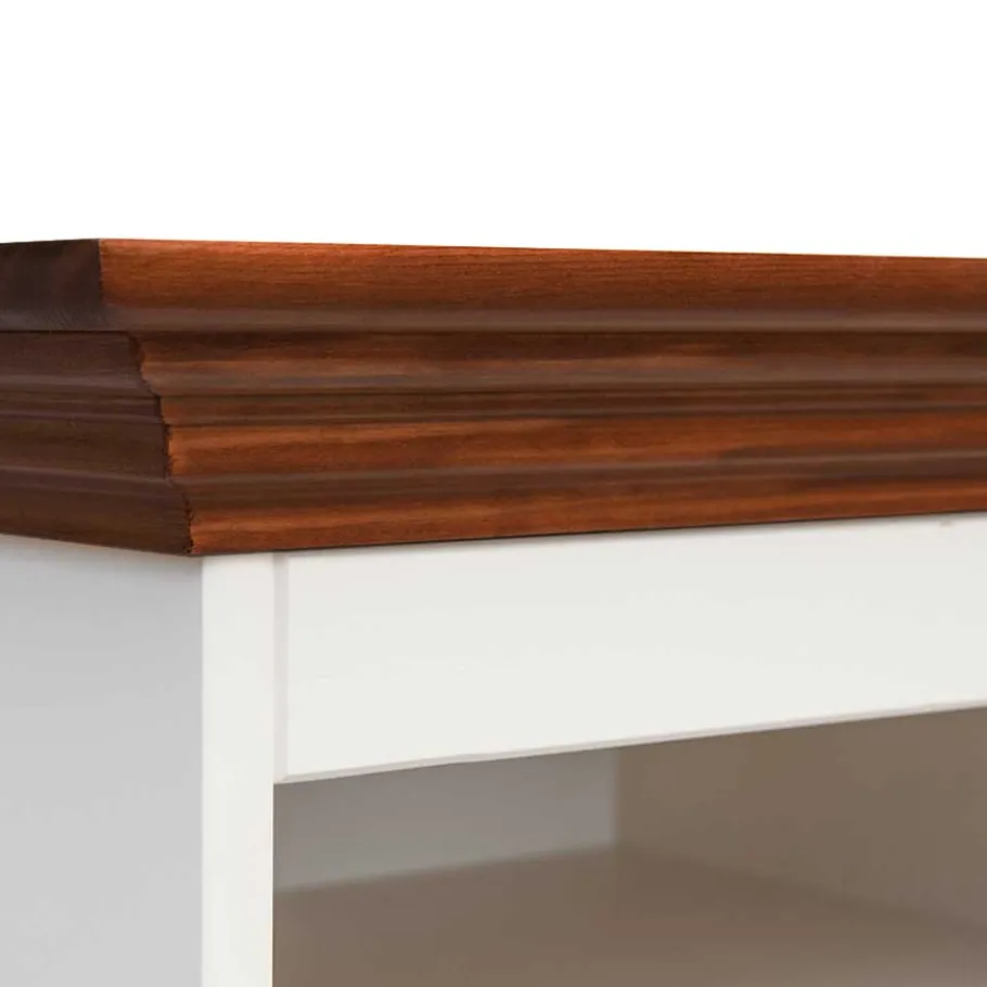 Das Bücherregal „Manipur“ zeichnet sich durch sein wunderschönes Design im hellen Landhausstil aus. Die weiße Lackierung (Deckkraft 85%, RAL 9010) bildet einen harmonischen Kontrast zur gefrästen Deckplatte in edler Nussbaumfarbe. Diese Farbkombination verleiht jedem Raum eine warme und einladende Atmosphäre. Die feinen Details und das vorn ausgeschnittene Sockelgestell unterstreichen die elegante Optik des Regals und machen es zu einem echten Blickfang.