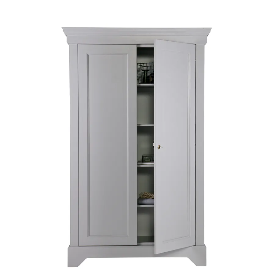 - Mit vier großen Einlegeböden aus Spanplatte innen, Grau folierte Innenausstattung
