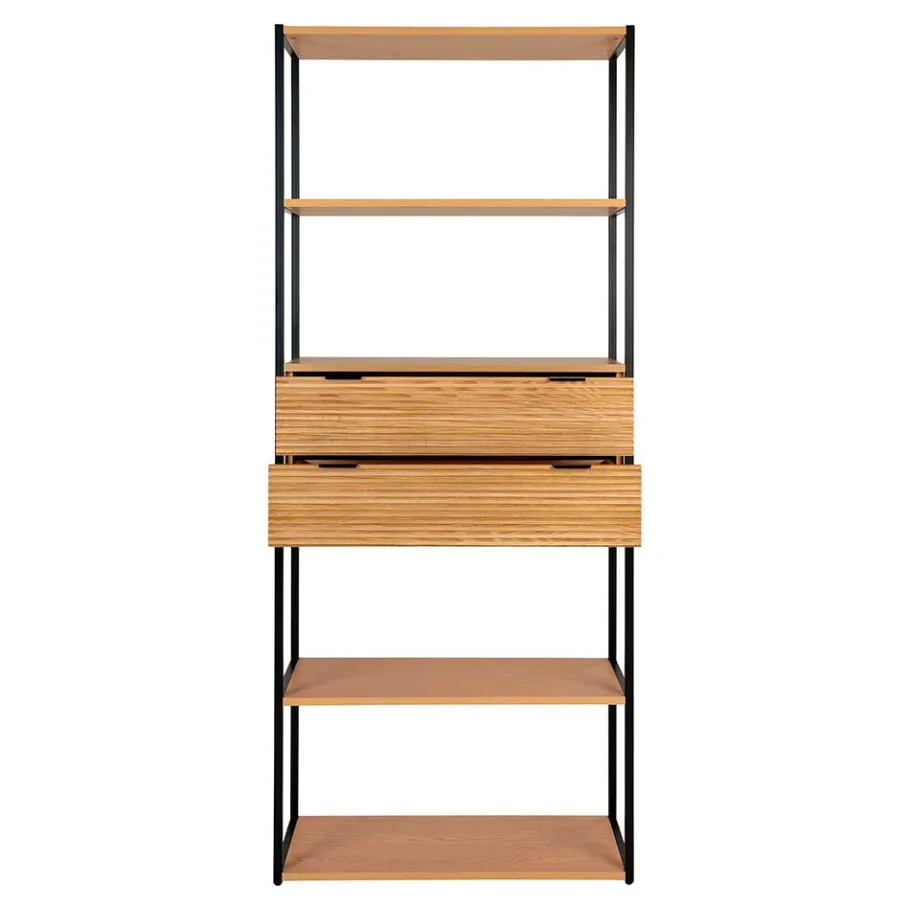 Das Regal „Lennilia“ überzeugt durch seine sorgfältige Verarbeitung und die Verwendung edler Materialien. Die Oberflächen des Holzwerkstoffs sind mit Echtholzfurnier und Lack versehen, wodurch sie besonders pflegeleicht und strapazierfähig sind. Das Metallgestell sorgt für eine stabile Konstruktion und verleiht dem Regal gleichzeitig einen industriellen Touch. Die zwei Schubladen sind mit robusten Metallauszügen ausgestattet und bieten zusätzlichen Stauraum für kleinere Gegenstände.