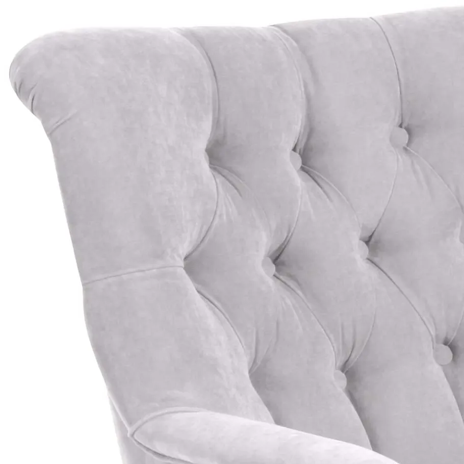 Die samtige Haptik des silbergrauen Veloursbezugs lässt bereits beim ersten Berühren spüren, wie luxuriös sich dieser Sessel anfühlt. Der Stoff ist nicht nur optisch ein Traum, sondern überzeugt auch durch seine praktischen Eigenschaften: Mit einer Strapazierfähigkeit von 40.000 Scheuertouren nach Martindale und einer Lichtechtheit von 5 bleibt der Bezug auch bei täglicher Nutzung dauerhaft schön. Die dezent glänzende Oberfläche bringt einen Hauch Eleganz ins Spiel und macht „Jennva“ zu einem Highlight – egal ob im Wohnzimmer, in der Leseecke oder als Solitär im Schlafzimmer.