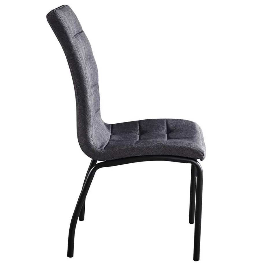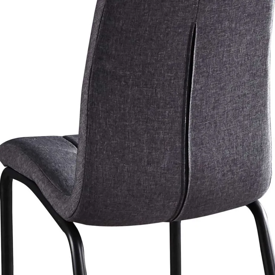 Für die Stühle kommt ein strapazierfähiger Webstoff aus 100 % Polyester zum Einsatz. Polyester punktet nicht nur mit einer angenehmen Haptik, sondern überzeugt durch seine Pflegeleichtigkeit, Formbeständigkeit und Langlebigkeit – optimal für ein lebendiges Zuhause. Schwarze Metallgestelle, die durch Pulverbeschichtung veredelt sind, garantieren zusätzlich eine robuste Basis. Die Pulverbeschichtung ist ein technisches Verfahren, bei dem Farbpulver elektrostatisch aufgetragen und anschließend eingebrannt wird – das Ergebnis ist eine kratzfeste, gleichmäßige und rostresistente Oberfläche.