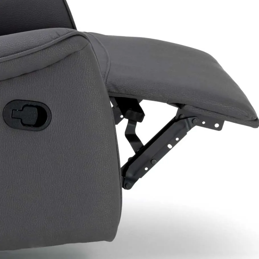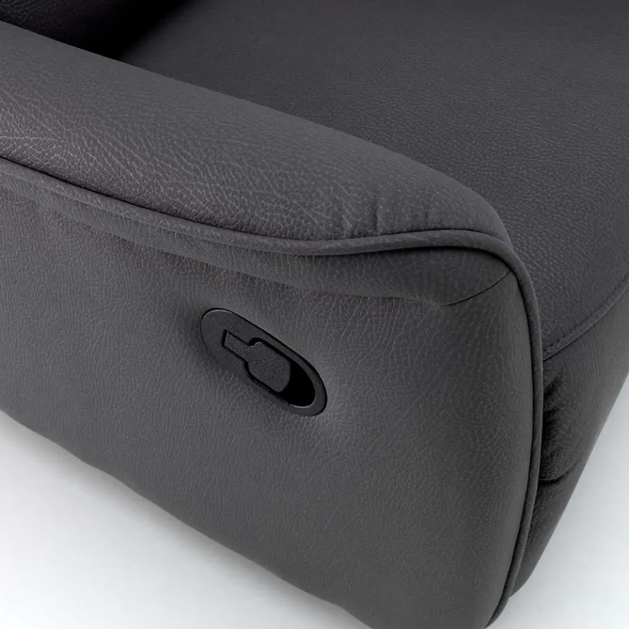 Der Sessel steht sicher und stabil auf einem robusten Untergestell aus Metall und Holz, das eine maximale Belastbarkeit von 130 kg bietet. Ummantelt von edlem, anthrazitfarbenem Kunstleder, fügt sich der „Zalona“ nahtlos in jedes Raumkonzept ein. Dieses Material ist nicht nur ein Blickfang, sondern auch ein Wunder der Pflegeleichtigkeit – Flecken lassen sich im Handumdrehen entfernen, was den Sessel besonders alltagstauglich macht.