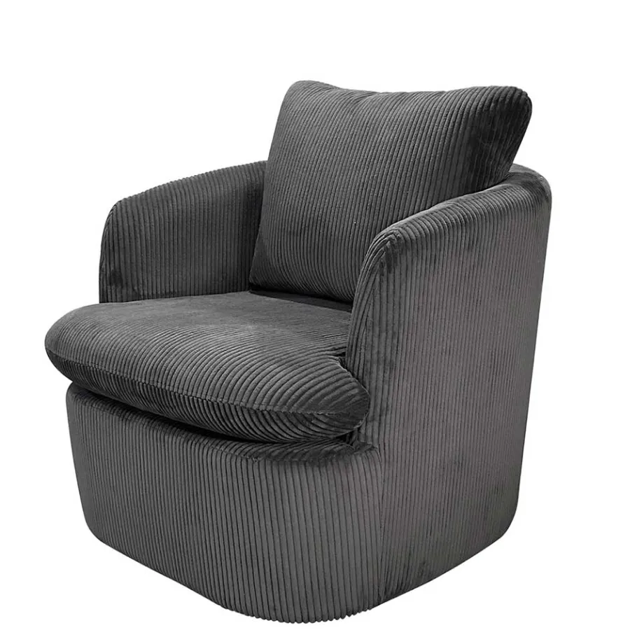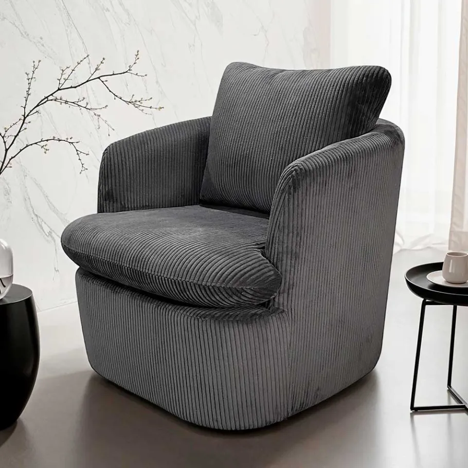 Der Sessel „Actino“ vereint modernes Design, hohen Sitzkomfort und praktische Funktion in einem formschönen Möbelstück. In edlem Dunkelgrau gehalten und mit einem hochwertigen Breitcord-Bezug ausgestattet, bringt er stilvolle Gemütlichkeit in jeden Wohnraum – ob im Wohnzimmer, im Schlafzimmer oder im Lesebereich.