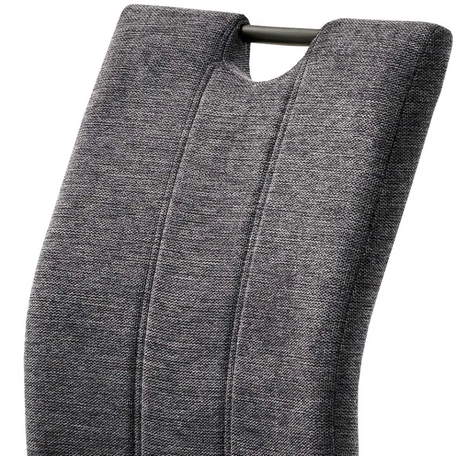 Die Sitzfläche und Rückenlehne des „Sanjuas“ sind mit einem anthrazitfarbenen Webstoff in edler Chenille-Optik bezogen. Dieser Stoff besteht zu 100 % aus strapazierfähigem Polyester, das sich durch seine lange Haltbarkeit und Widerstandsfähigkeit auszeichnet. Die Oberfläche ist besonders pflegeleicht und resistent gegen Abnutzung, was ihn zum perfekten Begleiter für den Alltag macht. Die samtige Struktur verleiht dem Stuhl zudem eine angenehme Haptik und ein edles Erscheinungsbild.