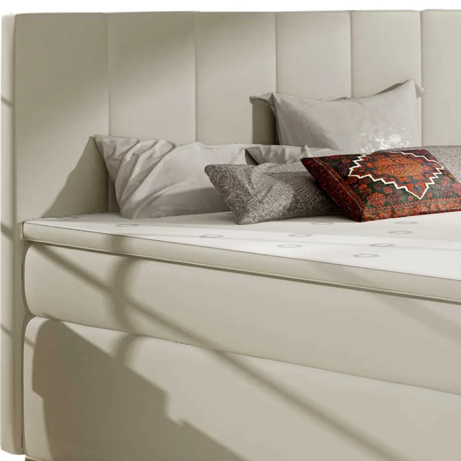 Das Kunstleder-Stauraumbett „Olav“ besticht durch seine zeitlose Schönheit und klare Linien. Der edle Bezug in Cremeweiß verleiht jedem Raum eine luxuriöse Note und lässt sich wunderbar mit verschiedensten Einrichtungsstilen kombinieren. Das gerade Kopfteil mit vertikalen Steppungen rundet das elegante Erscheinungsbild ab.