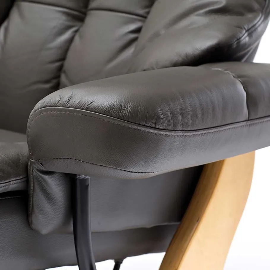 Der Relaxsessel „Normandie“ besteht aus einer Kombination von Formholz, Kunst- und Echtleder, die ihm nicht nur ein modernes und edles Aussehen verleihen, sondern auch eine besondere Langlebigkeit und Pflegeleichtigkeit bieten. Die Kontaktflächen, also Rücken, Sitz und Armlehnen, sind aus hochwertigem schlammfarbenem Rindsleder gefertigt. Echtleder zeichnet sich durch seine natürliche Haptik, Atmungsaktivität und Strapazierfähigkeit aus. Die Rückseite des Sessels besteht aus schlammfarbenem Kunstleder, das besonders pflegeleicht ist und dennoch eine ansprechende Optik bietet.