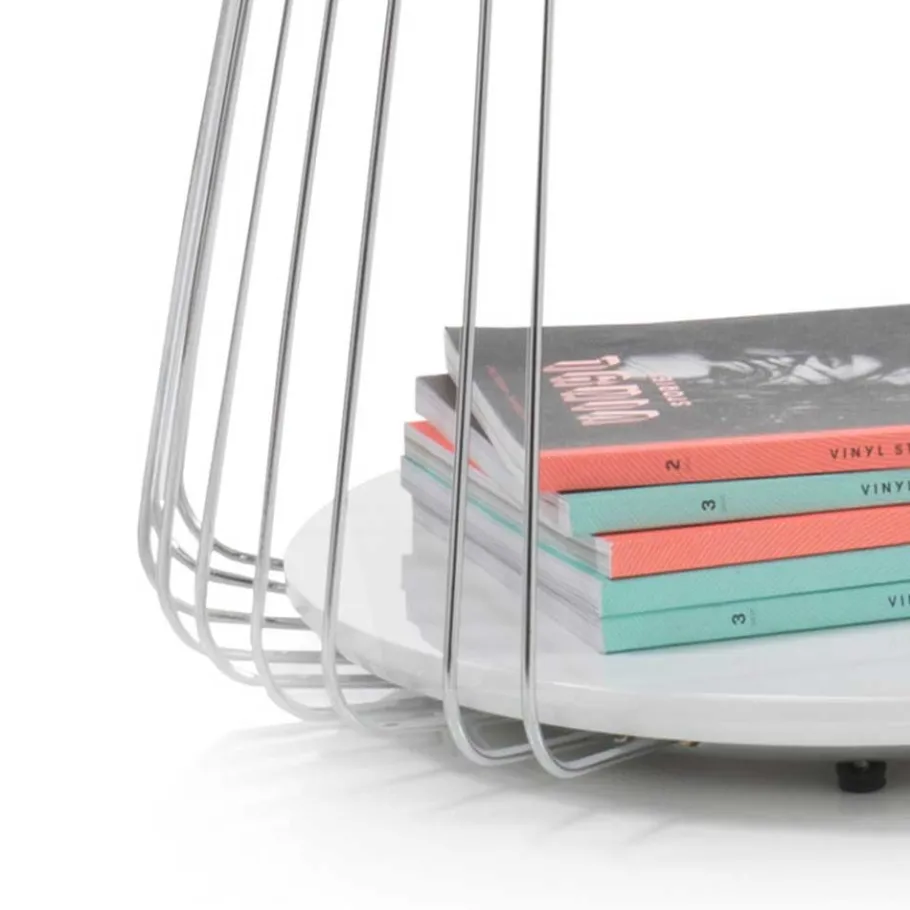 - Gestell aus verchromten Metallstäben und einer runden Bodenplatte