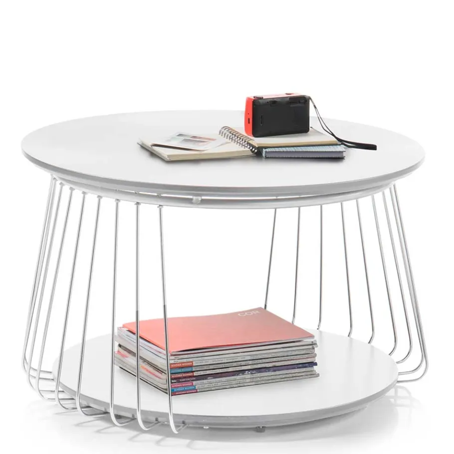 - Schicker Couchtisch in Weiß matt und Chromfarben
