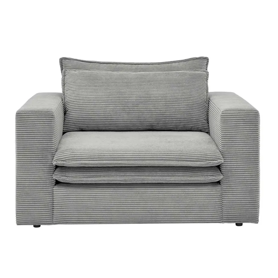 Erleben Sie zeitgemäßen Stil und höchsten Komfort mit unserem Cord Polstersessel mit Hocker Tessina. Dieses Set in elegantem Hellgrau ist nicht nur eine bequeme Ergänzung für Ihr Wohnzimmer, sondern auch ein Blickfang mit seinem modernen Look.