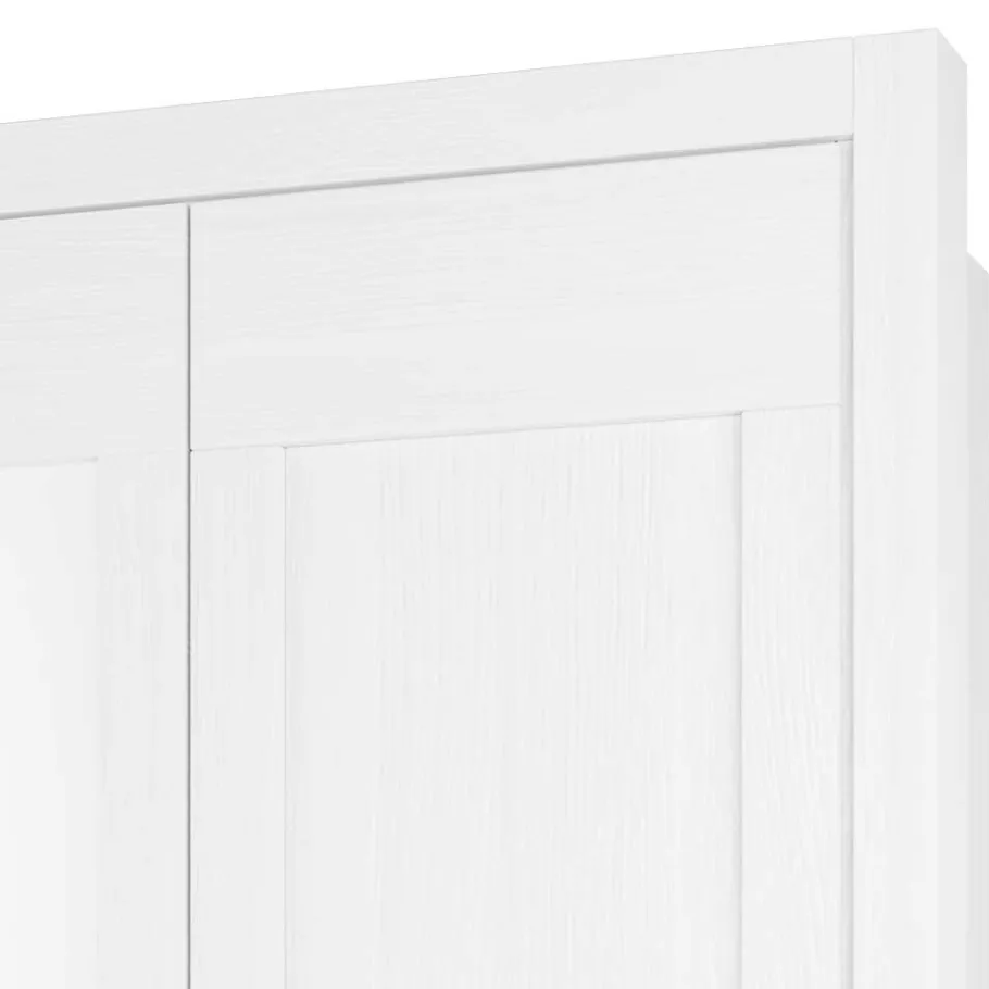 Mit Füllungen und einem Korpus aus robuster Spanplatte, ergänzt durch Türrahmen und einen Passepartout-Rahmen aus massivem Pinienholz, vereint der „Imtreba I“ Langlebigkeit mit Natürlichkeit. Pinienholz ist bekannt für seine Festigkeit und Beständigkeit, was dieses Möbelstück besonders langlebig macht. Die Pinienoberflächen sind gebürstet und in Weiß lackiert, was nicht nur die natürliche Schönheit des Holzes unterstreicht, sondern auch für eine pflegeleichte Oberfläche sorgt. Die Spanplatte ist mit Echtholzfurnier versehen, gebürstet und ebenfalls in Weiß lackiert, was den gesamten Schrank in ein harmonisches Licht taucht. Die Holzmaserung, die leicht durchscheint, verleiht jedem Schrank einen einzigartigen Charakter.