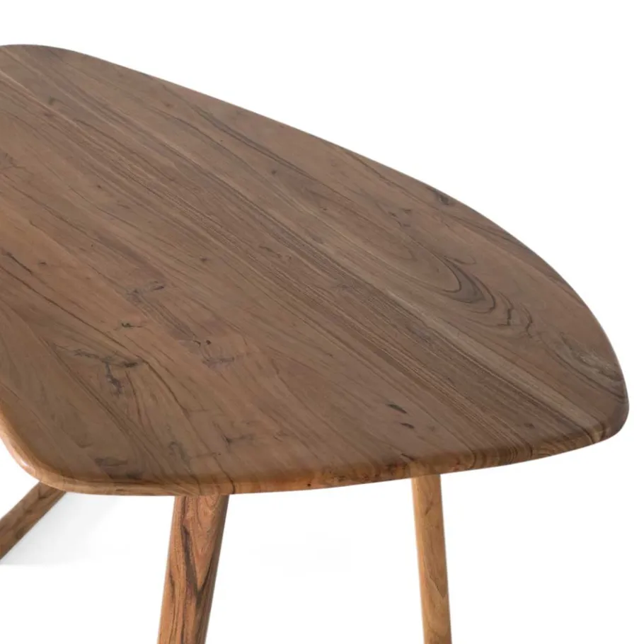 Gefertigt aus massivem Akazienholz, besticht der Schreibtisch durch seine langlebige und robuste Beschaffenheit. Das Akazienholz zeichnet sich durch eine lebendige Maserung aus, die jedes Möbelstück zu einem Unikat macht – so wird jeder Schreibtisch zu einem individuellen Kunstwerk. Die Tischplatte bietet nicht nur eine großzügige Arbeitsfläche, sondern auch eine angenehme Haptik. Der aufwendige Holzbügelrahmen in Winkelform sorgt zudem für eine stabile Konstruktion und verleiht dem Schreibtisch eine besondere visuelle Tiefe. Akazienholz ist bekannt für seine Widerstandsfähigkeit und die natürliche Schönheit, die es in jedem Raum zur Geltung bringt.