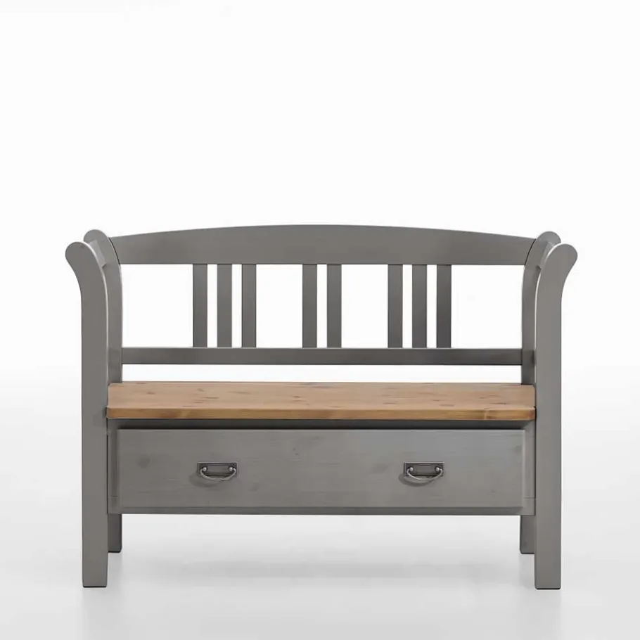 - Ländliche Bank in Grau und Kiefer laugenfarbig