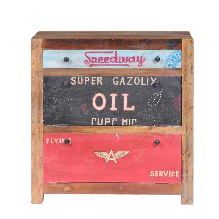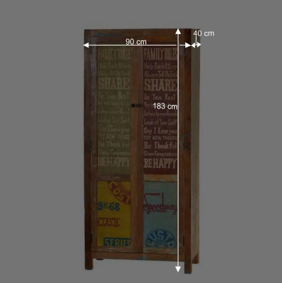 Vintage Look bedeutet, Schönheit in der Geschichte zu sehen. Jedes Stück der „Creek“-Serie ist aus massivem Recyclingholz gefertigt, was jedem Möbelstück eine eigene Geschichte und einen individuellen Charakter verleiht. Die bunten, individuell lackierten Oberflächen und die Fronten, die mit Schriften im Design von alten Werbeplakaten versehen sind, schaffen ein künstlerisches und umweltfreundliches Ambiente in Ihrem Eingangsbereich.