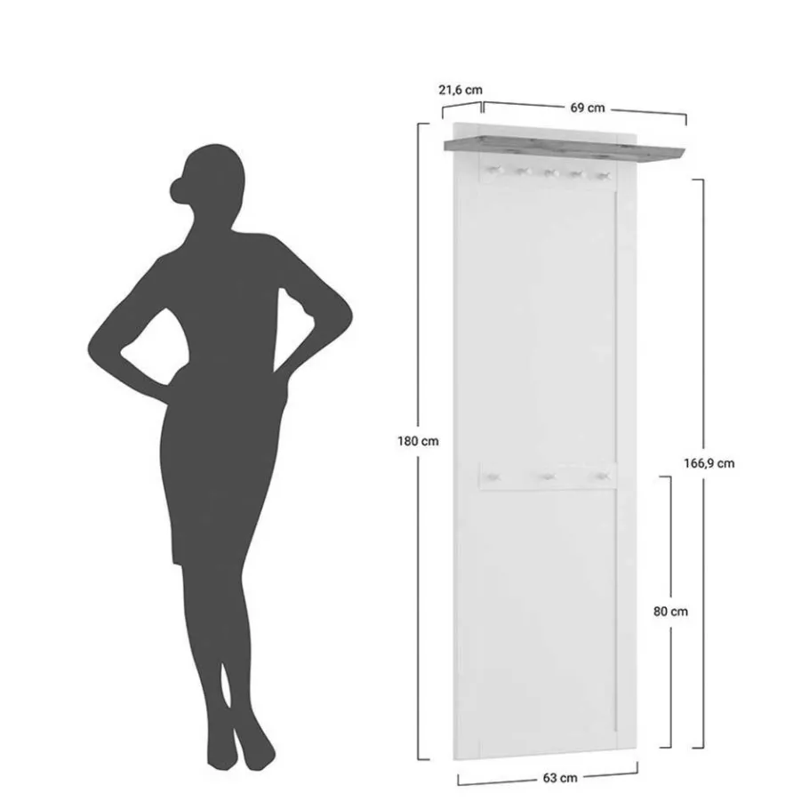 Mit einer Breite von 69 cm, einer Höhe von 180 cm und einer Tiefe von 22 cm ist das Garderobenpaneel „Zalya“ die ideale Größe für die meisten Räume. Es fügt sich harmonisch in Ihre Umgebung ein und bietet gleichzeitig ausreichend Stauraum für Ihre täglichen Utensilien, ohne den Raum zu überladen.