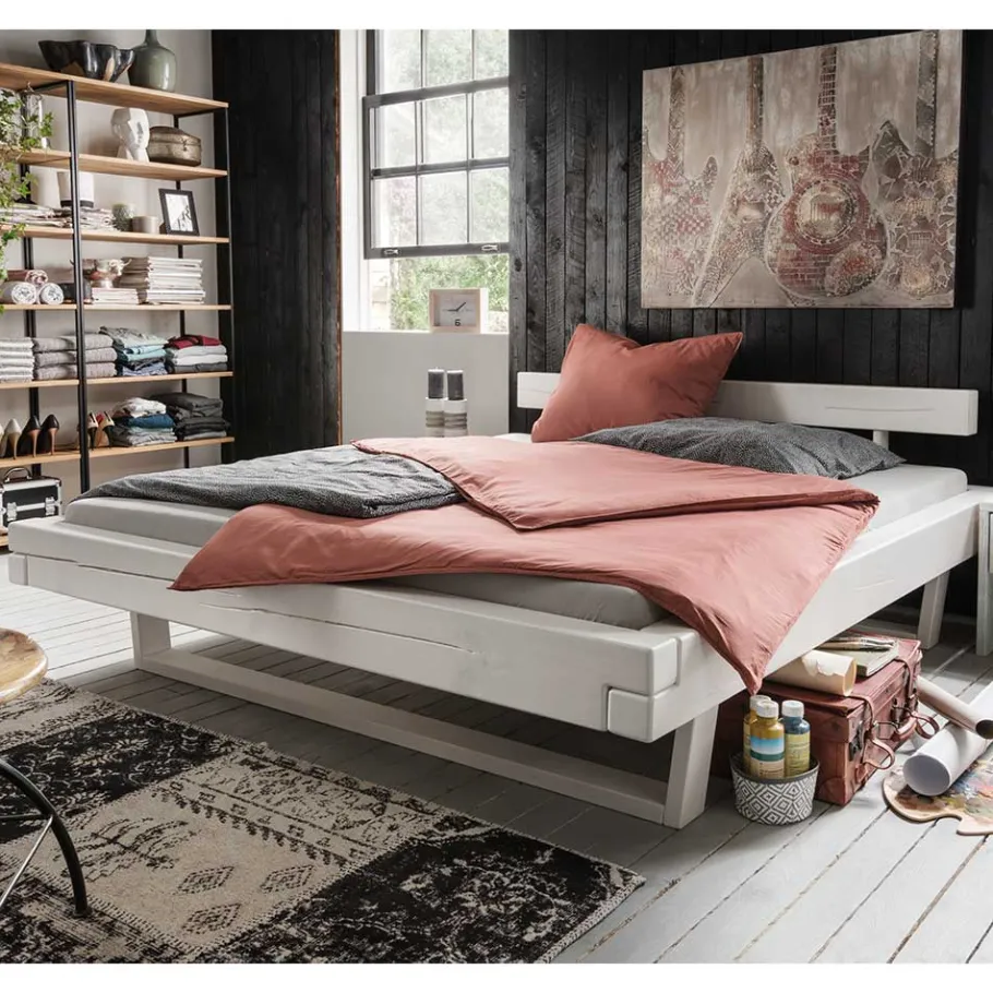 Outlet Massives Balkenbett in Weiß lasiert - Restania Betten