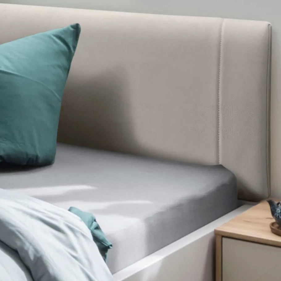 Das Bett verfügt über ein komfortables Polster-Kopfteil mit Kunstlederbezug, das sich ideal zum Entspannen beim Lesen oder Fernsehen eignet. Mit einer Höhe von 97 cm sorgt das Kopfteil für optimalen Komfort und Unterstützung. Die Kopfteilhöhe sowie die Einstiegshöhe von 48 cm bieten ein angenehmes Ein- und Aussteigen aus dem Bett.
