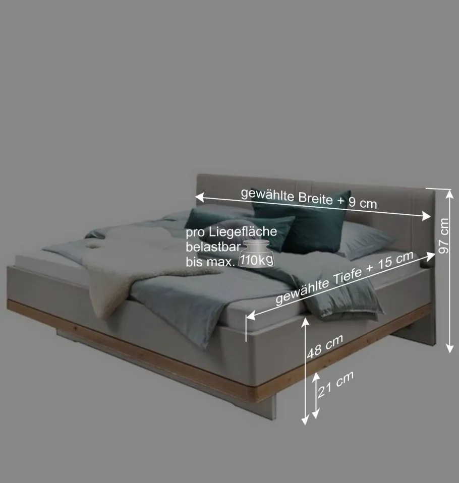 - 008: Breite: 189 / Tiefe: 225 / Liegefläche 180×210 cm
