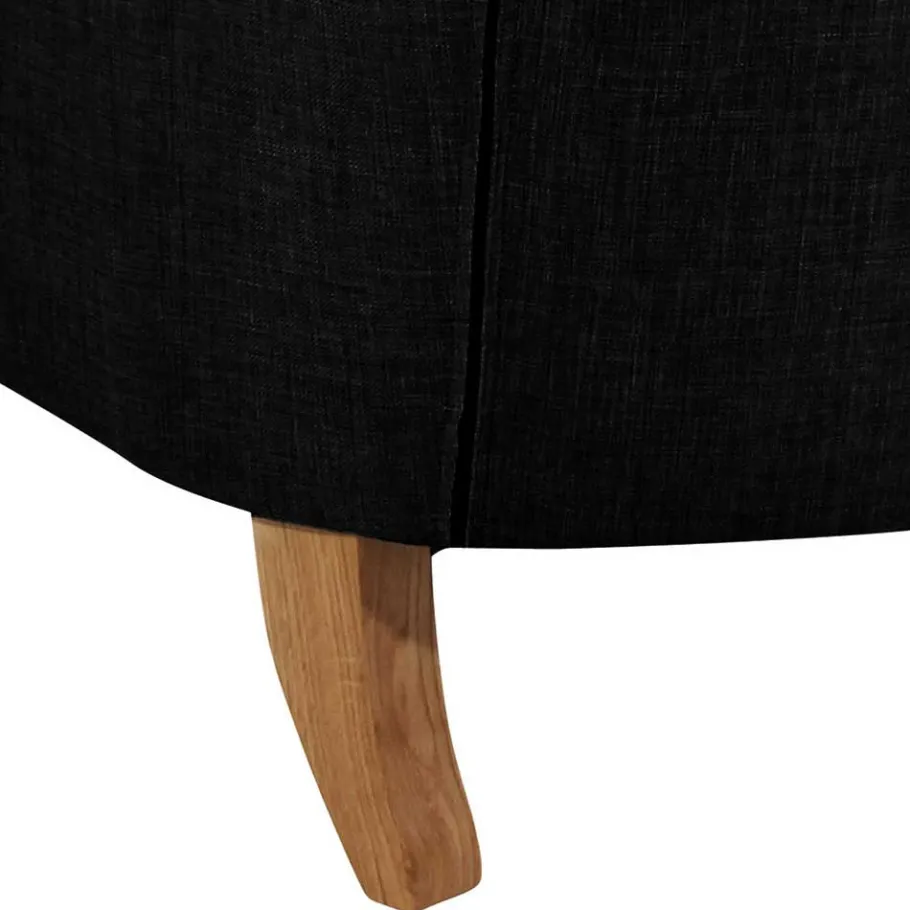 Der schwarze Flachgewebe-Bezug aus 100 % Polyester überzeugt auf den ersten Griff: angenehm weich, dezent strukturiert und zugleich ausgesprochen widerstandsfähig. Mit einer Strapazierfähigkeit von 23.000 Scheuertouren nach Martindale hält Grazy auch intensiver Nutzung mühelos stand – ob mit Kindern, Haustieren oder im Alltagstrubel. Dank einer Lichtechtheit der Stufe 5 bleibt der tiefschwarze Farbton auch bei Sonneneinstrahlung lange erhalten. Und das Beste: Der Rücken ist echt bezogen, sodass Sie Grazy frei im Raum platzieren und ihn von allen Seiten bewundern können.