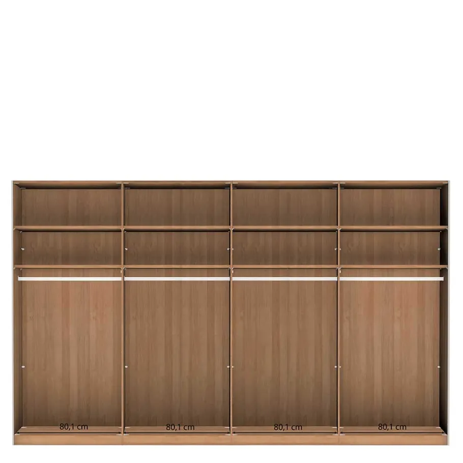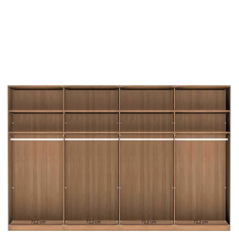 Hinter den eleganten Türen verbirgt sich ein durchdachter Stauraum mit extra viel Platz. Jede der vier Facheinheiten ist mit zwei Einlegeböden und einer Metall-Kleiderstange ausgestattet, was eine flexible und organisierte Aufbewahrung Ihrer Kleidung ermöglicht.