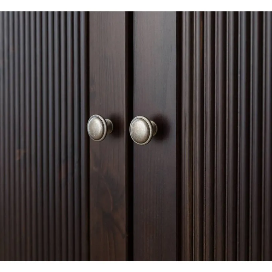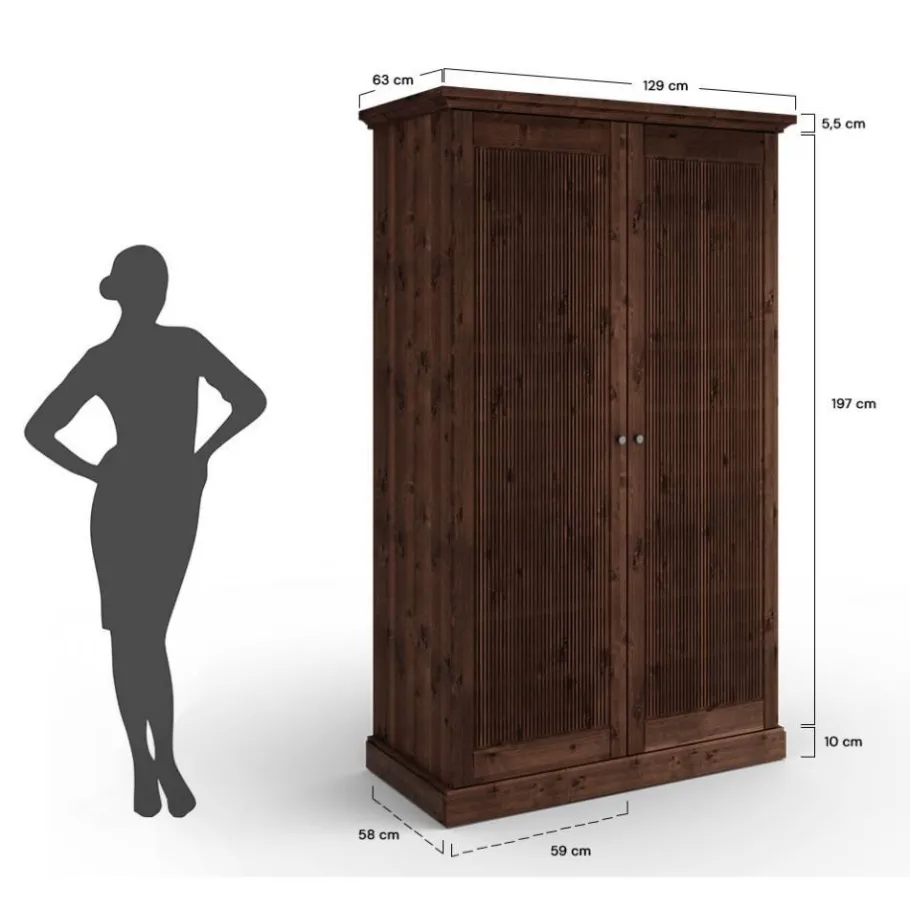 Gefertigt aus massivem Kiefernholz besticht der Kleiderschrank „Nauizia“ durch seine natürliche Ausstrahlung und Stabilität. Die gebeizte Oberfläche mit einer Deckkraft von rund 70 % lässt die charakteristische Maserung der Kiefer sichtbar durchscheinen, wodurch jeder Schrank seinen individuellen Charakter erhält. Die formschöne, leicht überstehende Deckplatte mit klassischem Profil rundet das edle Erscheinungsbild stilvoll ab.