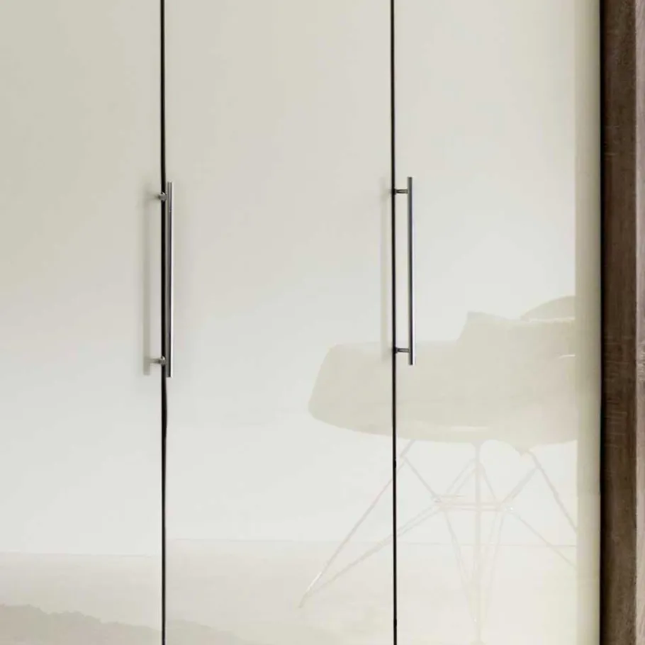 Die glänzenden Stangengriffe aus Metall verleihen dem Kleiderschrank „Filmau“ das gewisse Extra und erleichtern das Öffnen der Türen.