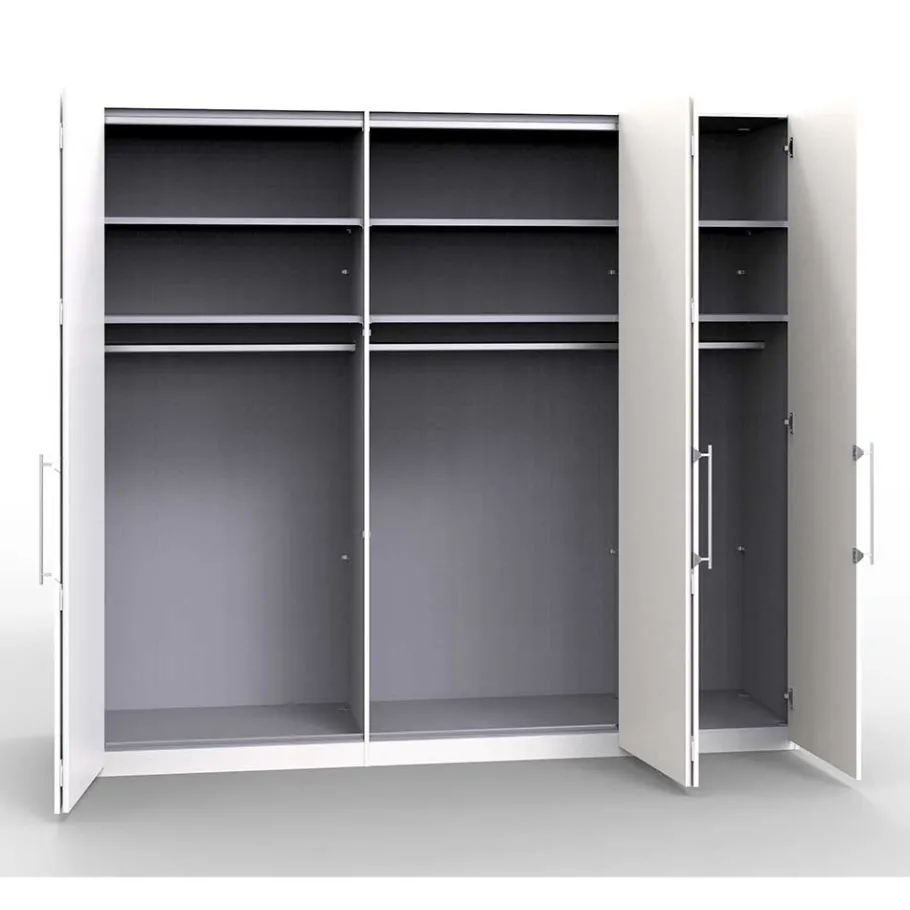 Hinter den Türen finden Sie drei Facheinheiten mit unterschiedlichen Breiten (96,4/96,4/47,5 cm), die jeweils mit zwei Einlegeböden und einer stabilen Kleiderstange aus Metall ausgestattet sind. So können Sie Ihre Kleidung und Accessoires ordentlich und geordnet unterbringen.