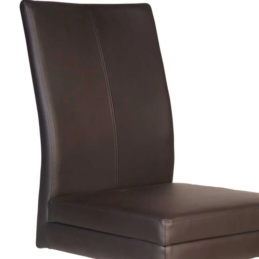 Der Kunstlederbezug des „Imbizia“ besteht zu 100 % aus hochwertigem Polyurethan und überzeugt nicht nur durch seine edle Optik in Dunkelbraun, sondern auch durch seine Pflegeleichtigkeit. Verschüttete Flüssigkeiten und Flecken lassen sich im Handumdrehen entfernen – ein kurzer Wisch genügt, und der Stuhl erstrahlt wieder wie neu. Dieser Bezug ist strapazierfähig und bietet Ihnen viele Jahre Freude und leichte Pflege in einem.