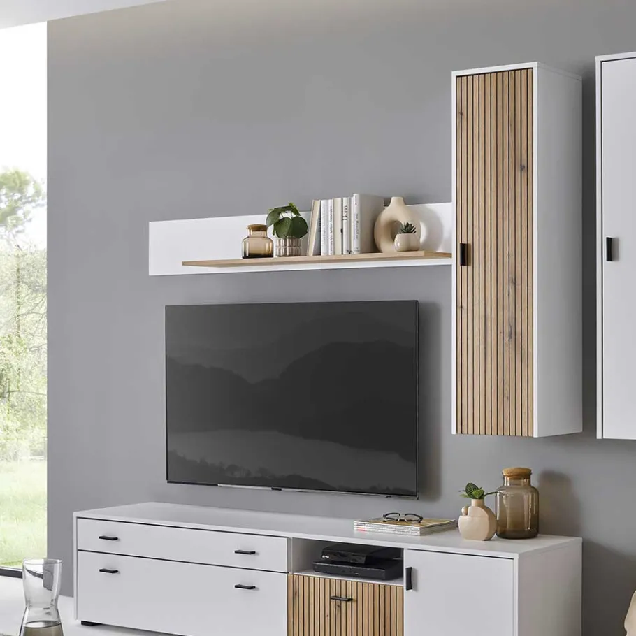 - Geradliniges Wandboard in Weiß und Wildeichefarben