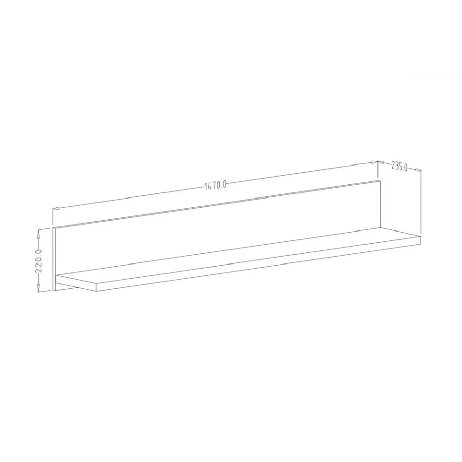 Mit einer Breite von 147 cm, einer Höhe von 22 cm und einer Tiefe von 24 cm bietet das Wandregal ausreichend Platz für Bücher, Dekorationen oder Pflanzen. Die Ablagefläche ist bis zu 5 kg belastbar, sodass Sie problemlos auch schwerere Gegenstände sicher darauf abstellen können. Das Regal passt sich mit seiner schlichten und modernen Optik jedem Raum an und ist eine praktische Ergänzung für Wohnzimmer, Schlafzimmer oder Flur.